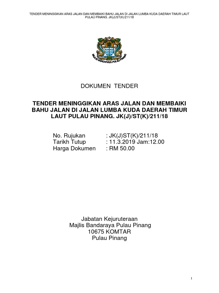 Tender Meninggikan Aras Jalan Dan Membaiki Bahu Jalan Di Jalan Lumba Kuda Jalan Goh Guan Hoe Daerah Timur Laut Pulau Pinang Latest Pdf Pdf
